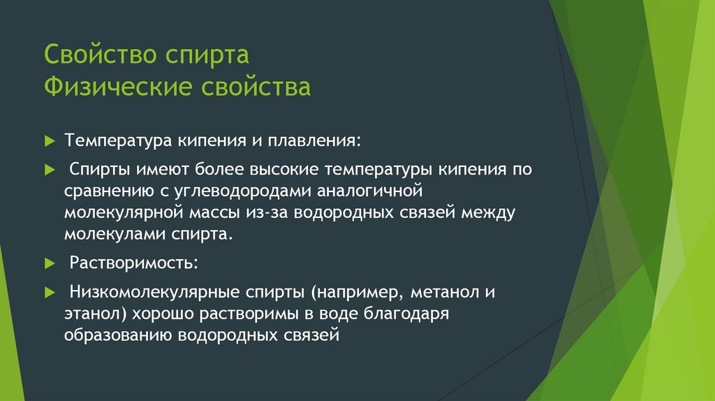 Физическое и Химическоесвойство спирта