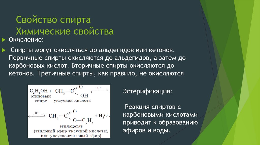 Свойство спиртаХимические свойства