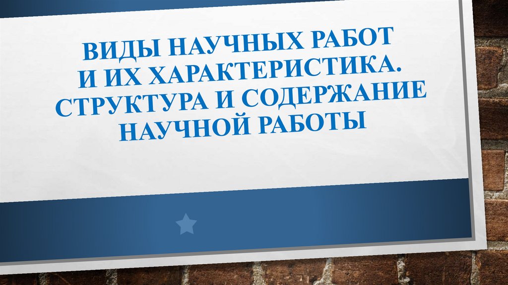 Виды научных работ и их характеристика. Структура и содержание научной работы