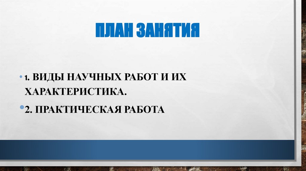 ПЛАН ЗАНЯТИЯ• 1. ВИДЫ НАУЧНЫХ РАБОТ И ИХ