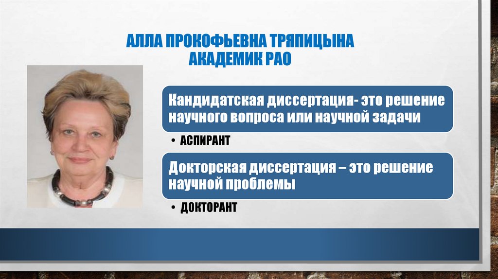 АЛЛА ПРОКОФЬЕВНА ТРЯПИЦЫНААКАДЕМИК РАО