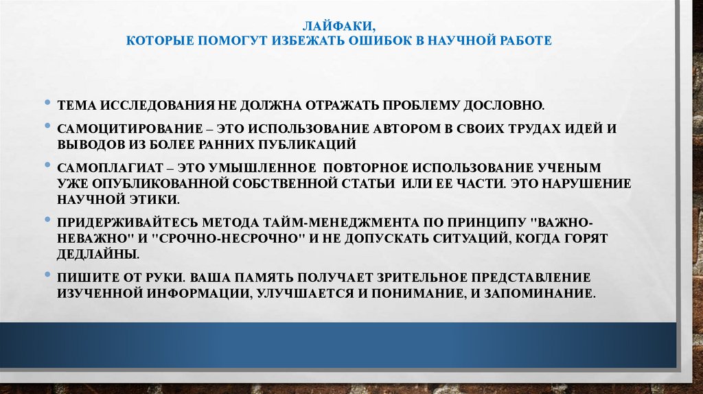 ЛАЙФАКИ,КОТОРЫЕ ПОМОГУТ ИЗБЕЖАТЬ ОШИБОК В НАУЧНОЙ РАБОТЕ