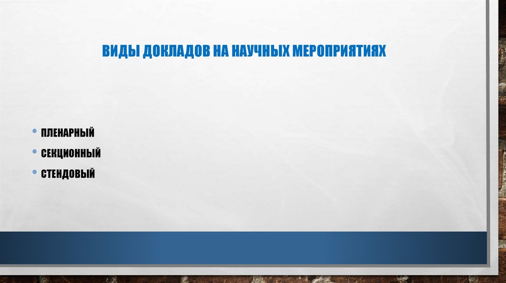 ВИДЫ ДОКЛАДОВ НА НАУЧНЫХ МЕРОПРИЯТИЯХ• ПЛЕНАРНЫЙ