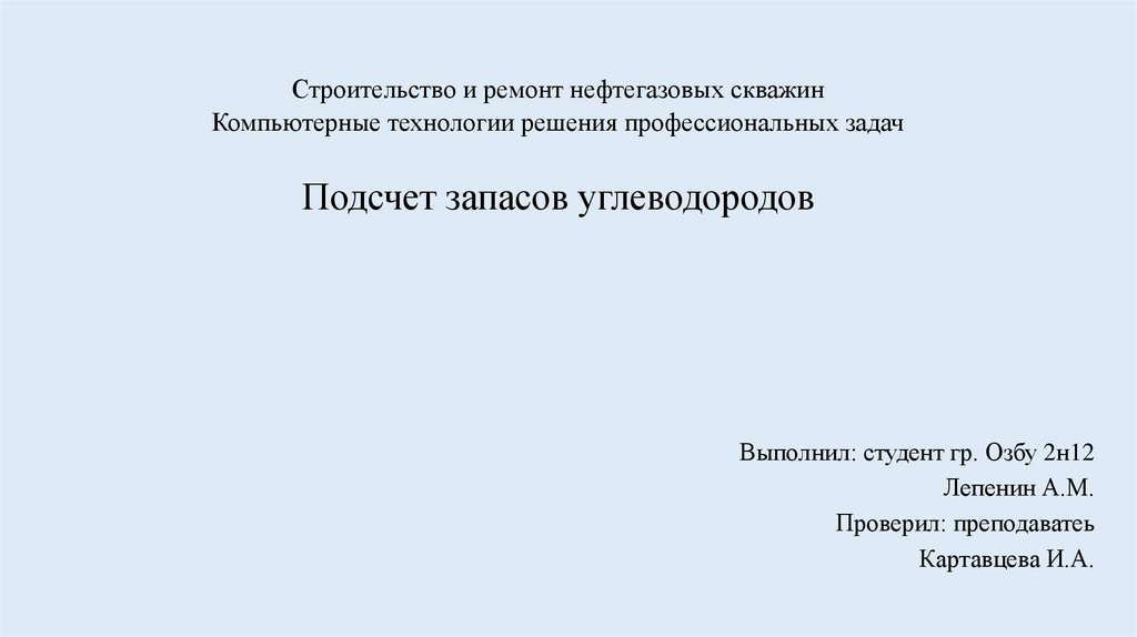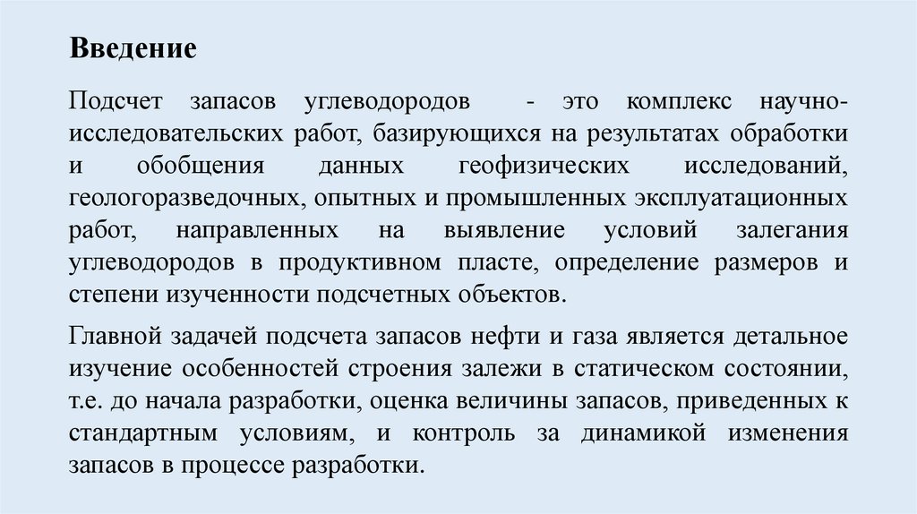 ВведениеПодсчет запасов углеводородов