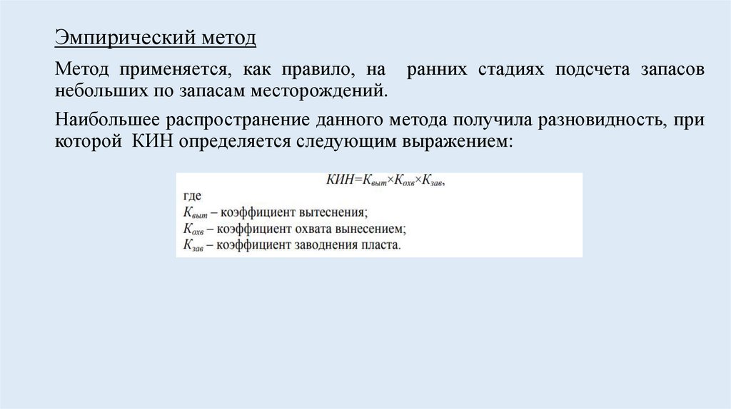 Эмпирический методМетод применяется, как правило, на ранних стадиях подсчета запасов
