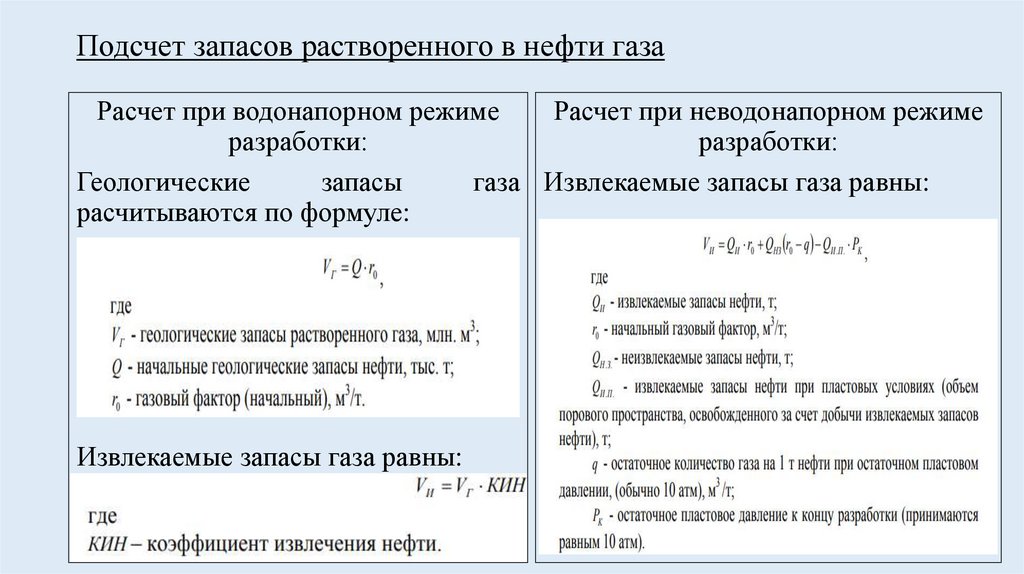 Подсчет запасов растворенного в нефти газаРасчет при водонапорном режиме
