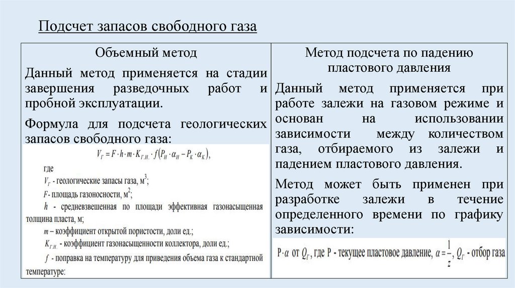 Подсчет запасов свободного газаОбъемный метод