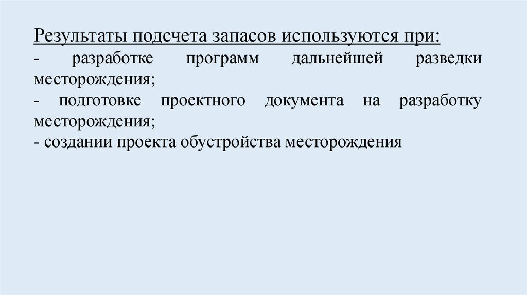Результаты подсчета запасов используются при:разработке