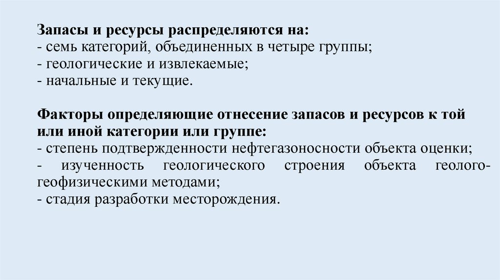 Факторы определяющие отнесение запасов и ресурсов к той