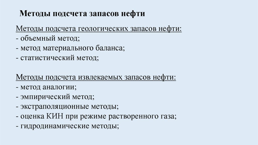 Методы подсчета извлекаемых запасов нефти: