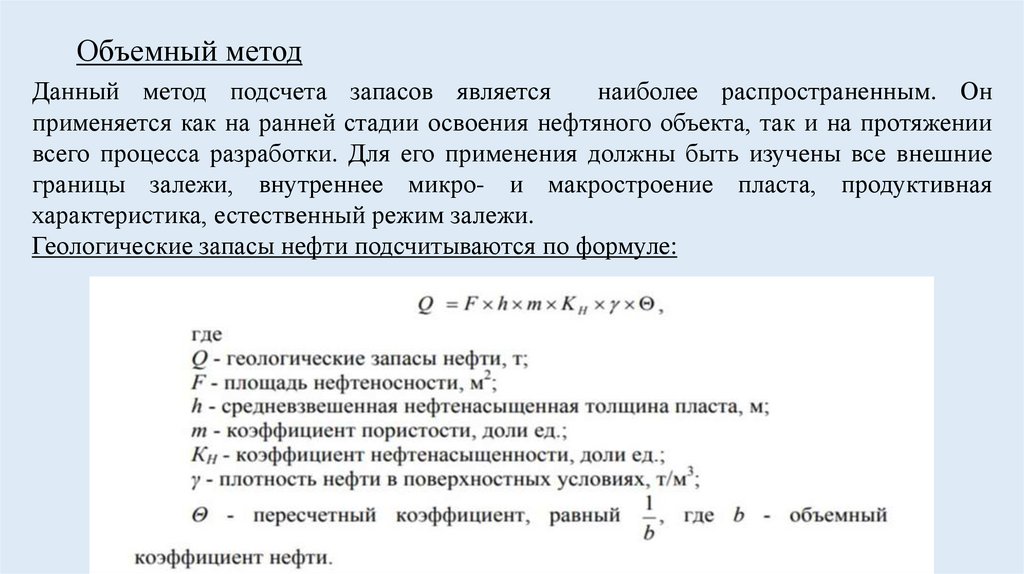 Объемный методДанный метод подсчета запасов является