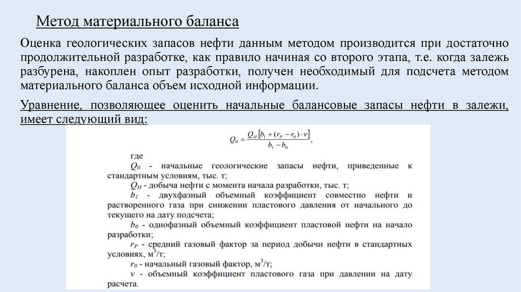 Метод материального балансаОценка геологических запасов нефти данным методом производится при достаточно