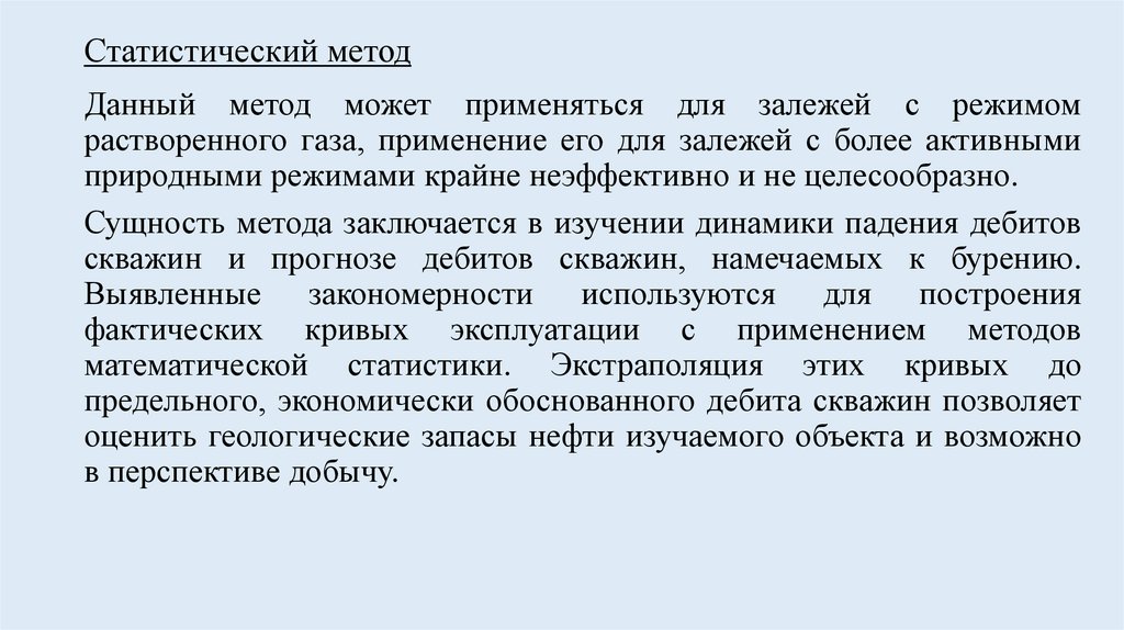 Статистический методДанный метод может применяться для залежей с режимом