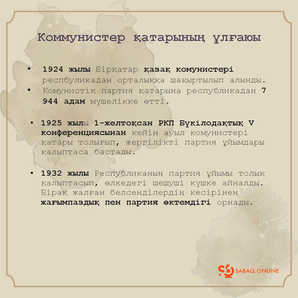 Коммунистер қатарының ұлғаюы1924 жылы Бірқатар қазақ комунистері