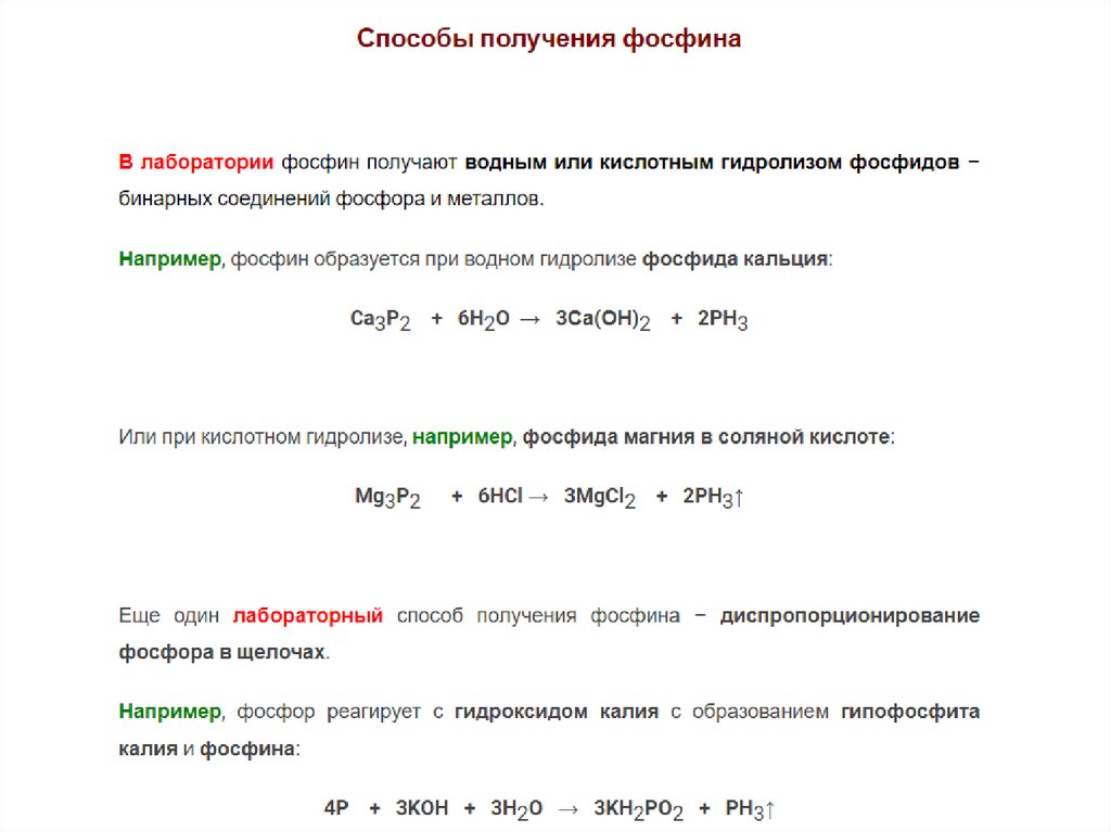 4Р + 3KOH + 3Н2О → РН3 + 3KН2РО2. гипофосфит