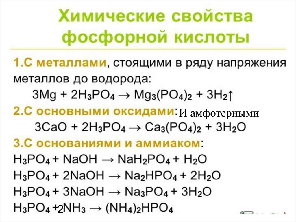 2) с основными и амфотерными оксидами, образуя фосфаты