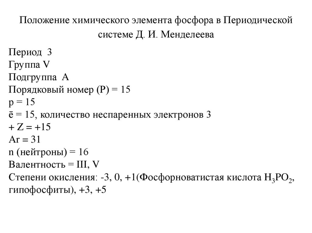 Положение химического элемента фосфора в Периодическойсистеме Д. И. Менделеева