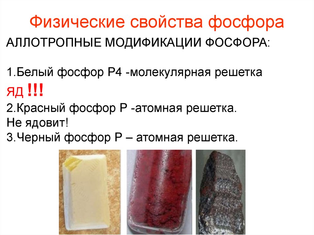 Физические свойства фосфораАЛЛОТРОПНЫЕ МОДИФИКАЦИИ ФОСФОРА: