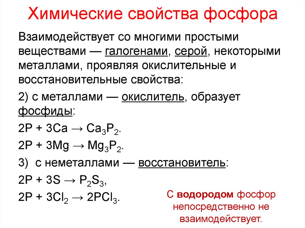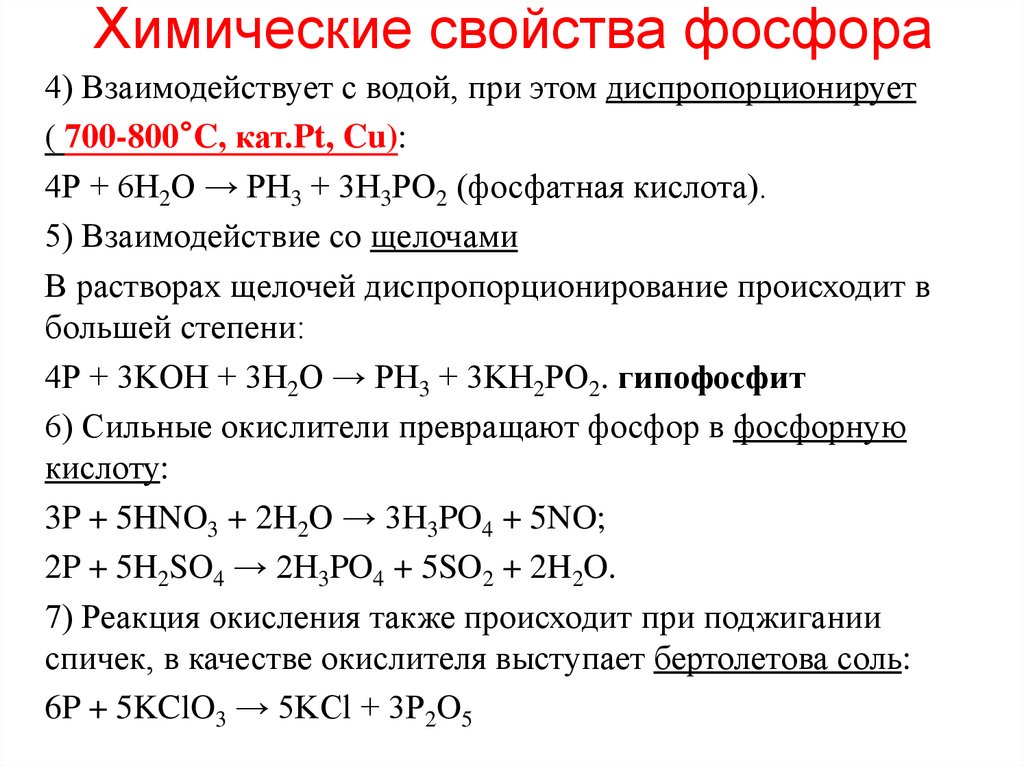 4Р + 6Н2О → РН3 + 3Н3РО2 (фосфатная кислота).