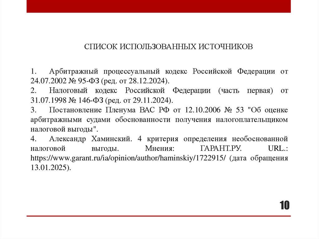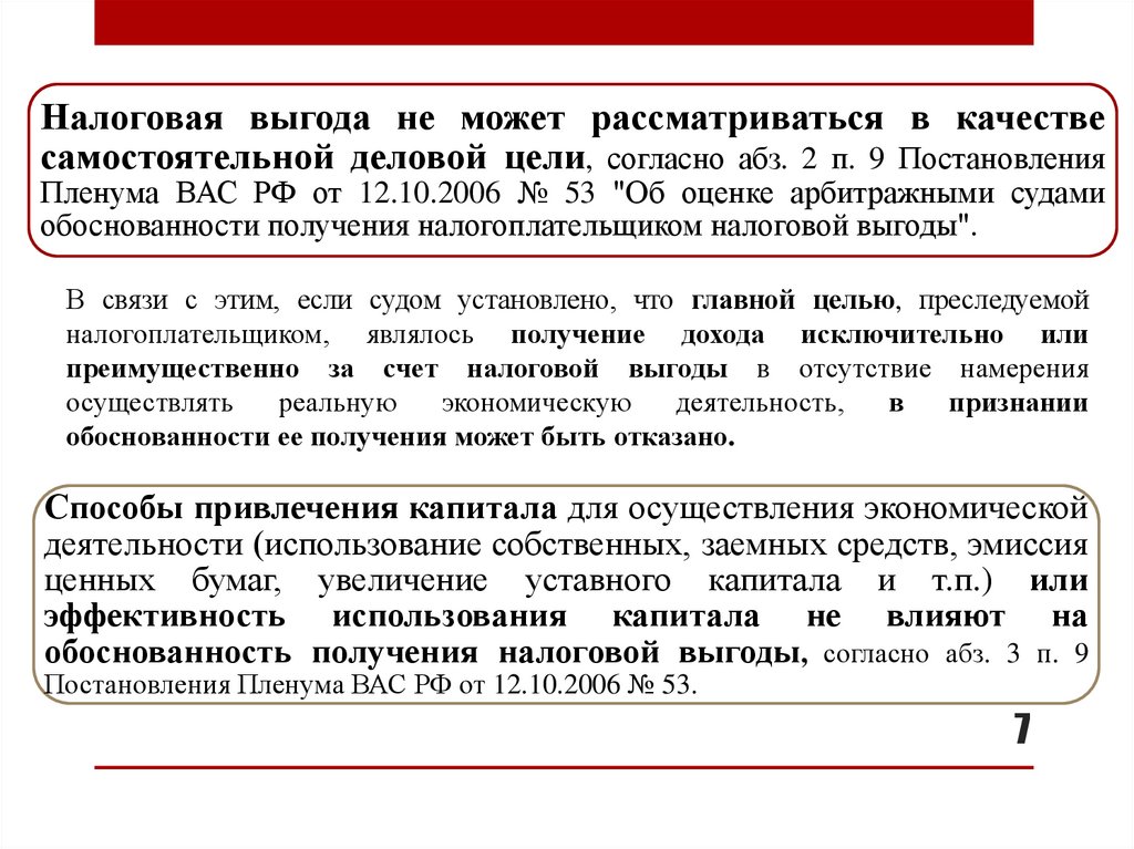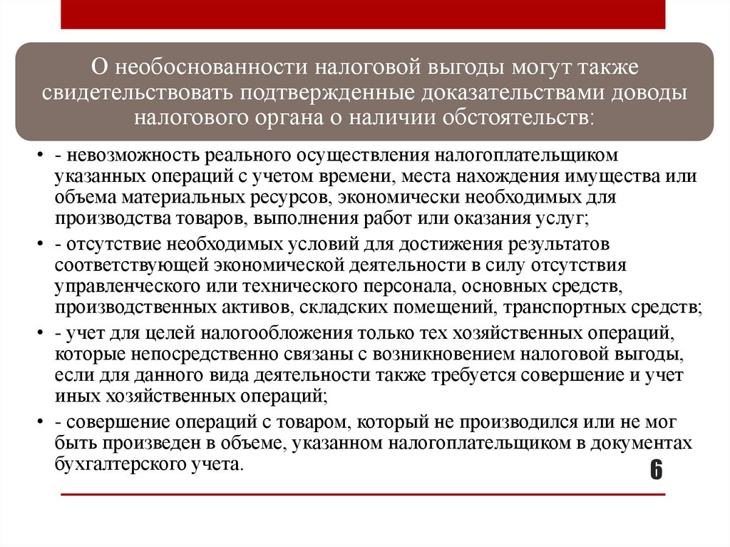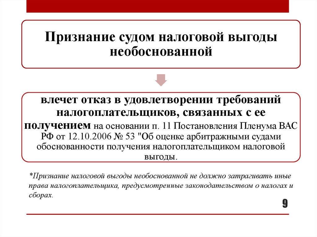 обоснованность получения налоговой выгоды, согласно абз. 3 п. 9