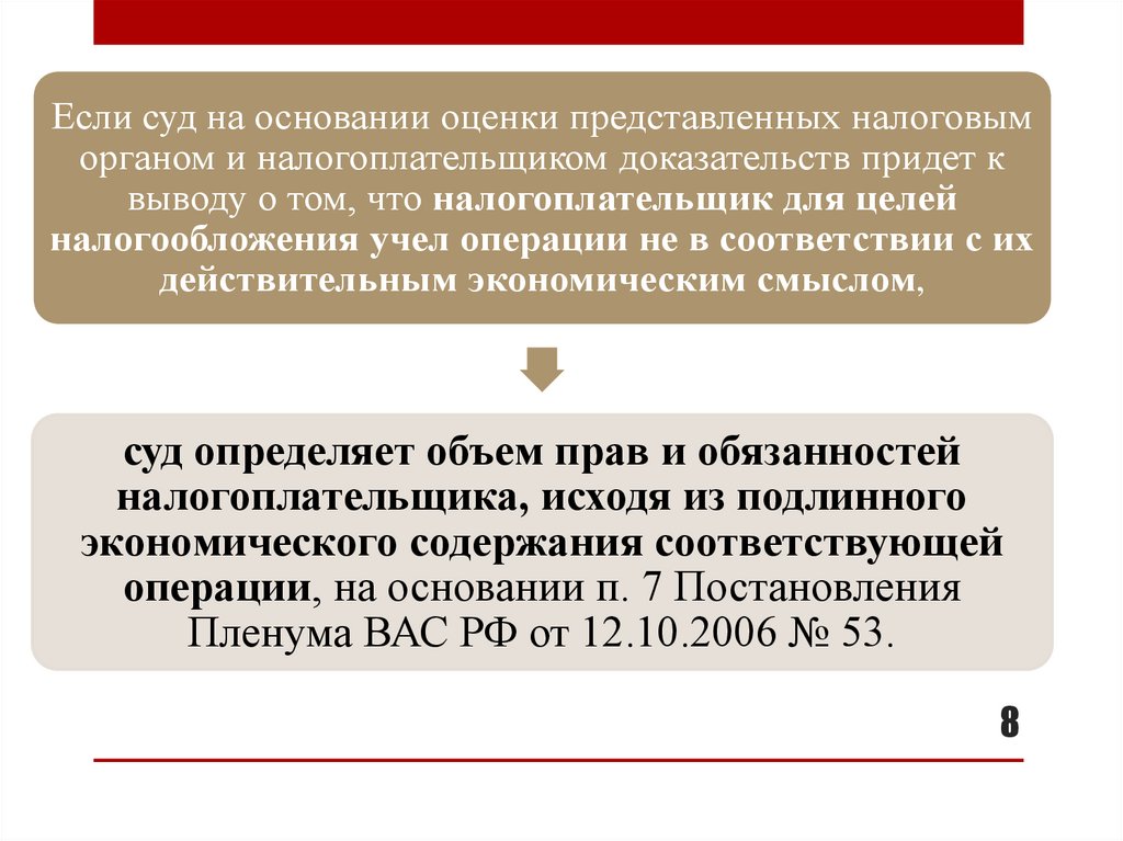 Если суд на основании оценки представленных налоговыморганом и налогоплательщиком доказательств придет к