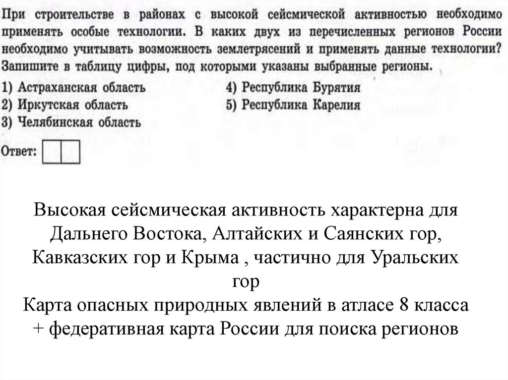 Высокая сейсмическая активность характерна дляДальнего Востока, Алтайских и Саянских гор,