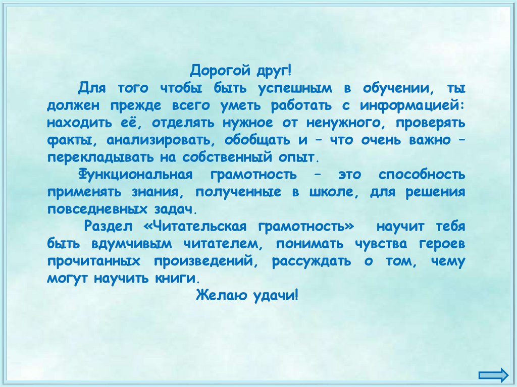 Дорогой друг!Для того чтобы быть успешным в обучении, ты