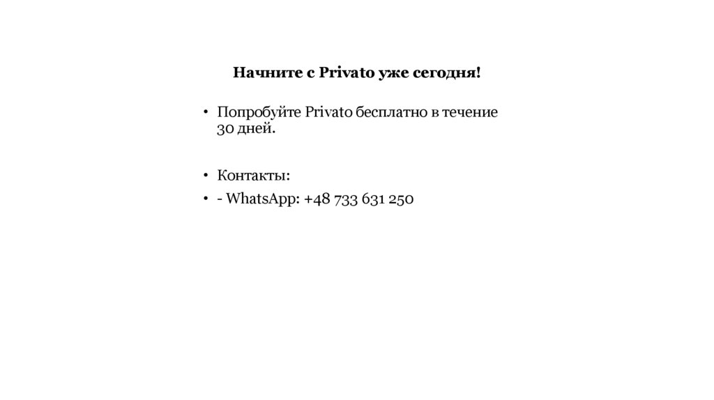 Начните с Privato уже сегодня!• Попробуйте Privato бесплатно в течение