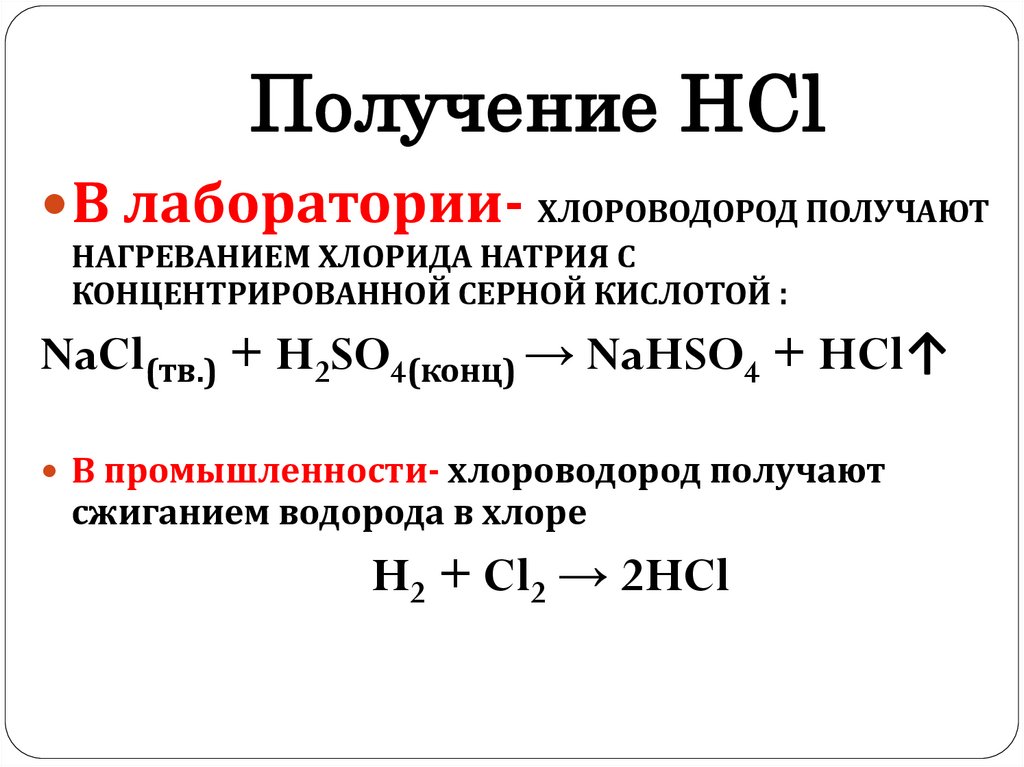 Получение HClВ лаборатории- ХЛОРОВОДОРОД ПОЛУЧАЮТ