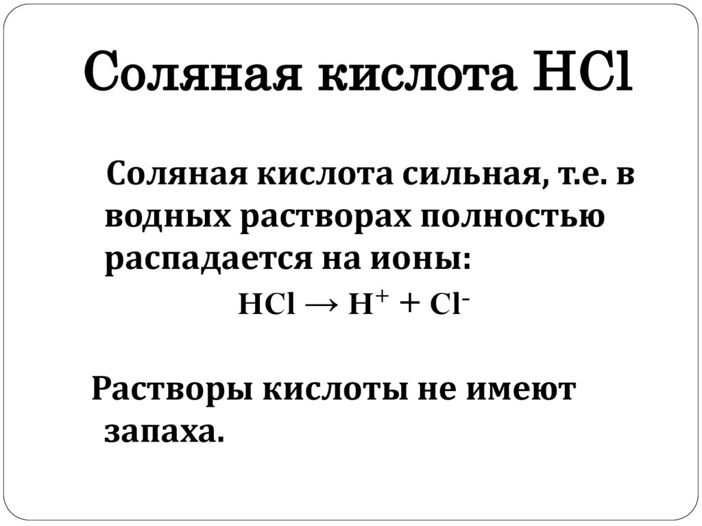 Соляная кислота HClСоляная кислота сильная, т.е. в