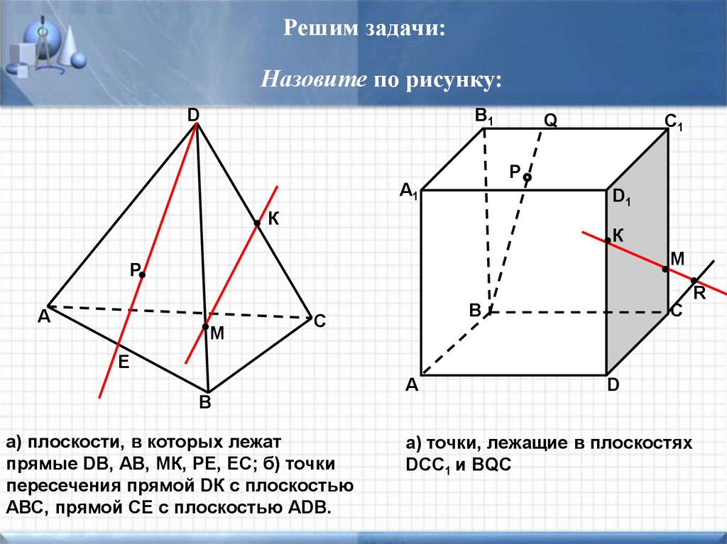 прямые DВ, АВ, МК, РЕ, ЕС; б) точки