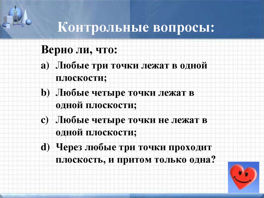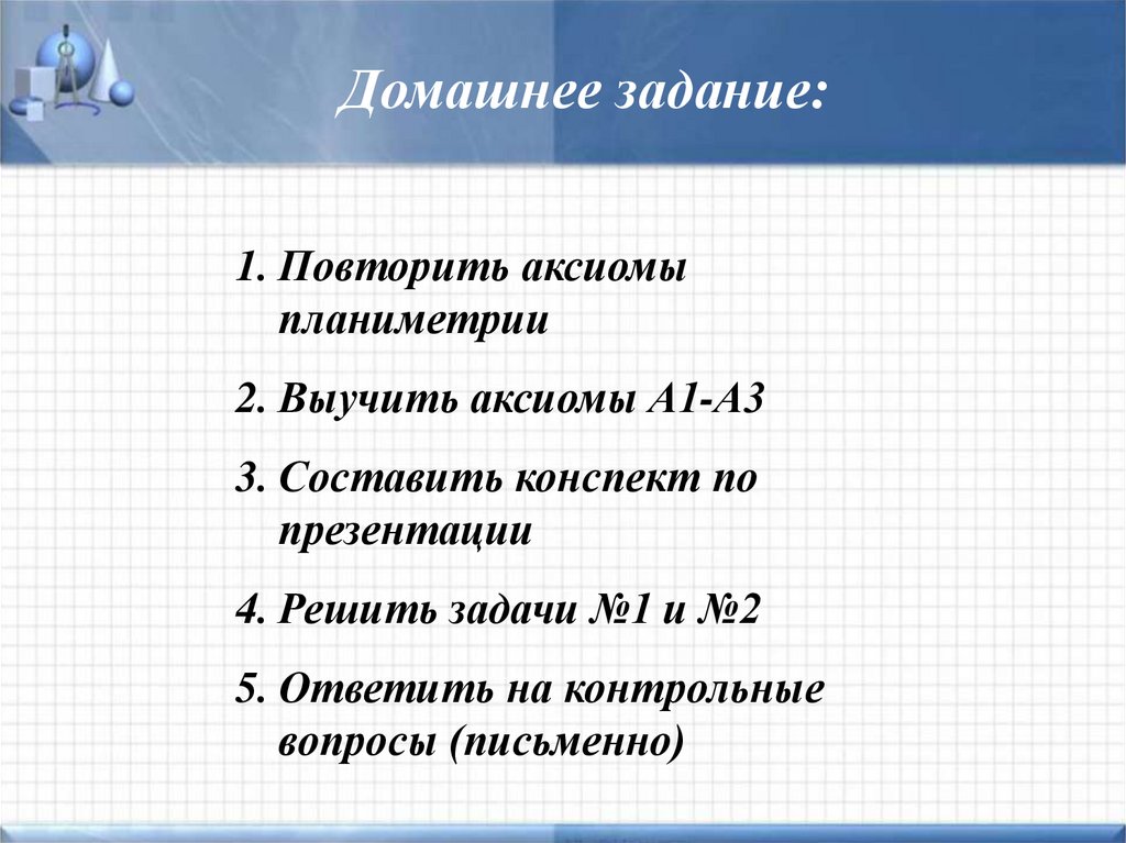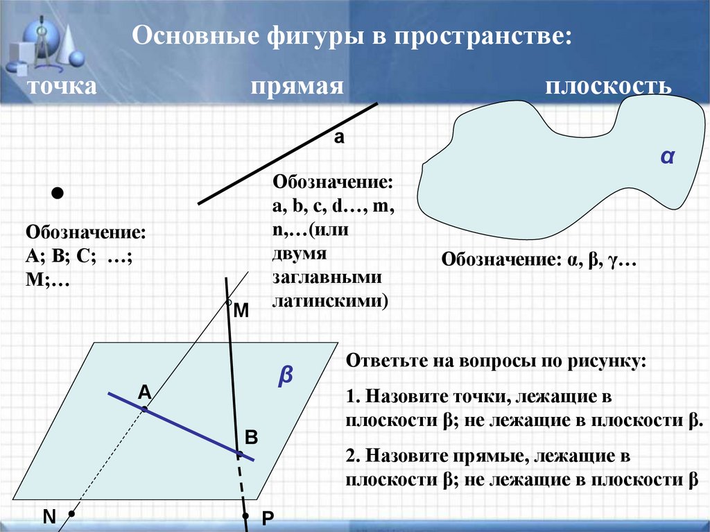 1. Предмет СТЕРЕОМЕТРИИ. АКСИОМЫ стереометрии.