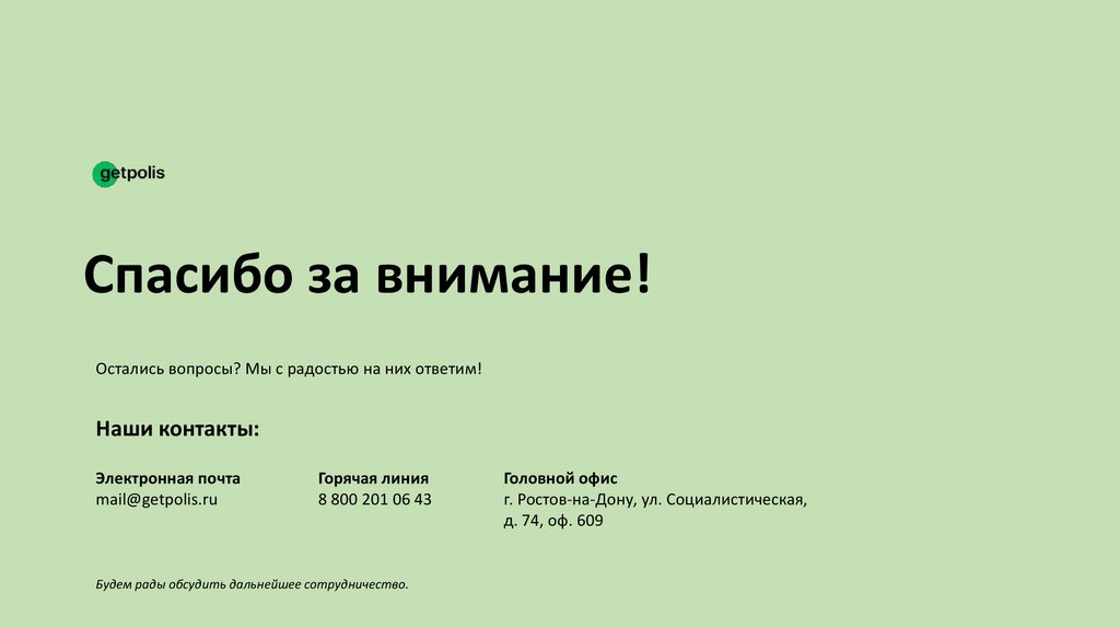 Спасибо за внимание!Остались вопросы? Мы с радостью на них ответим!