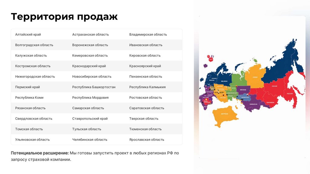 Потенциальное расширение: Мы готовы запустить проект в любых регионах РФ по