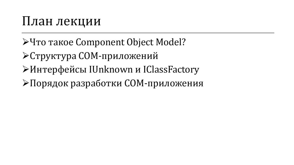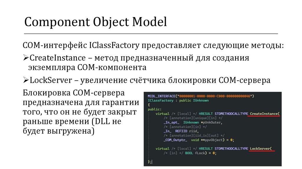 Component Object ModelCOM-интерфейс IClassFactory предоставляет следующие методы: