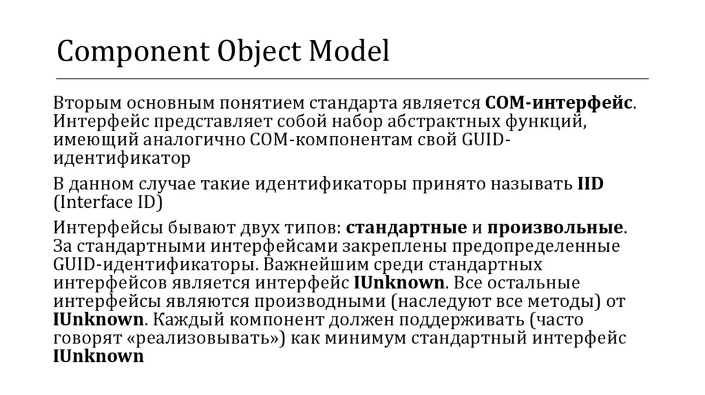 Component Object ModelПервым основным понятием, которым оперирует стандарт