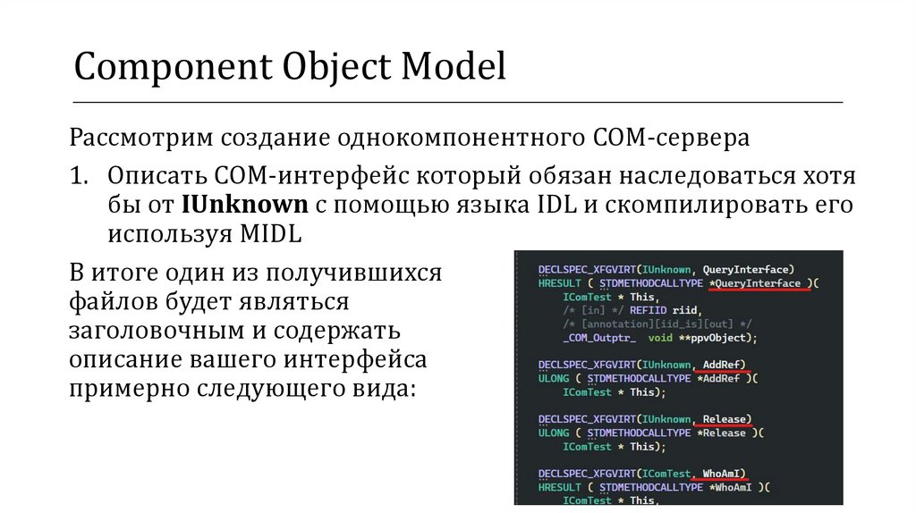 Component Object ModelКроме ваших методов, интерфейс будущего компонента