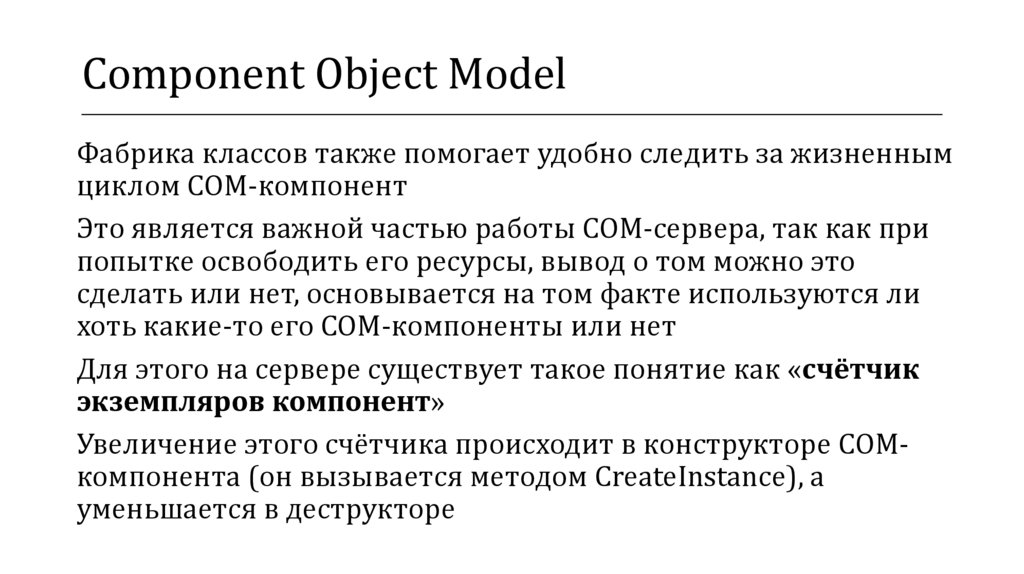 Component Object ModelФабрика классов также помогает удобно следить за жизненным