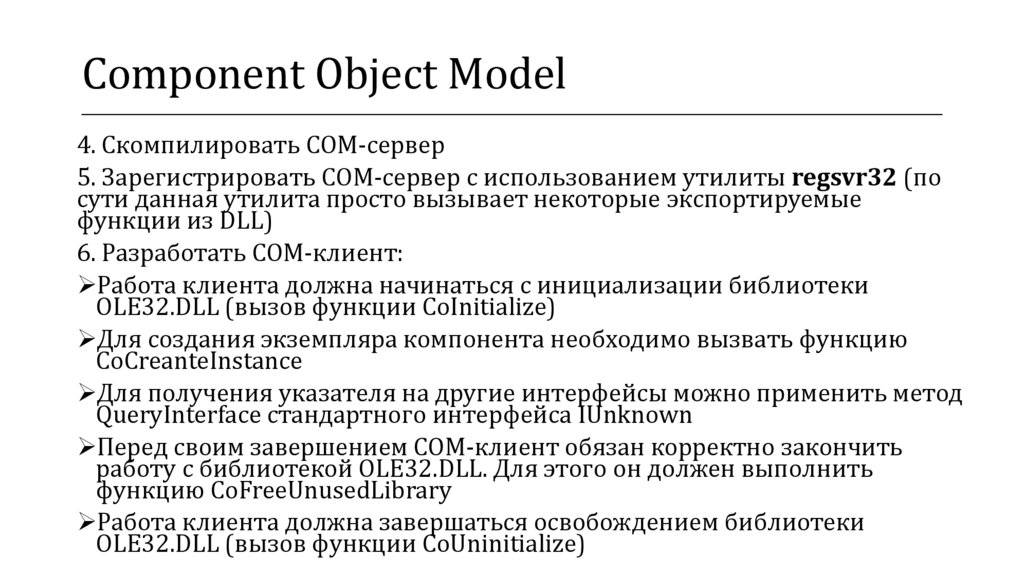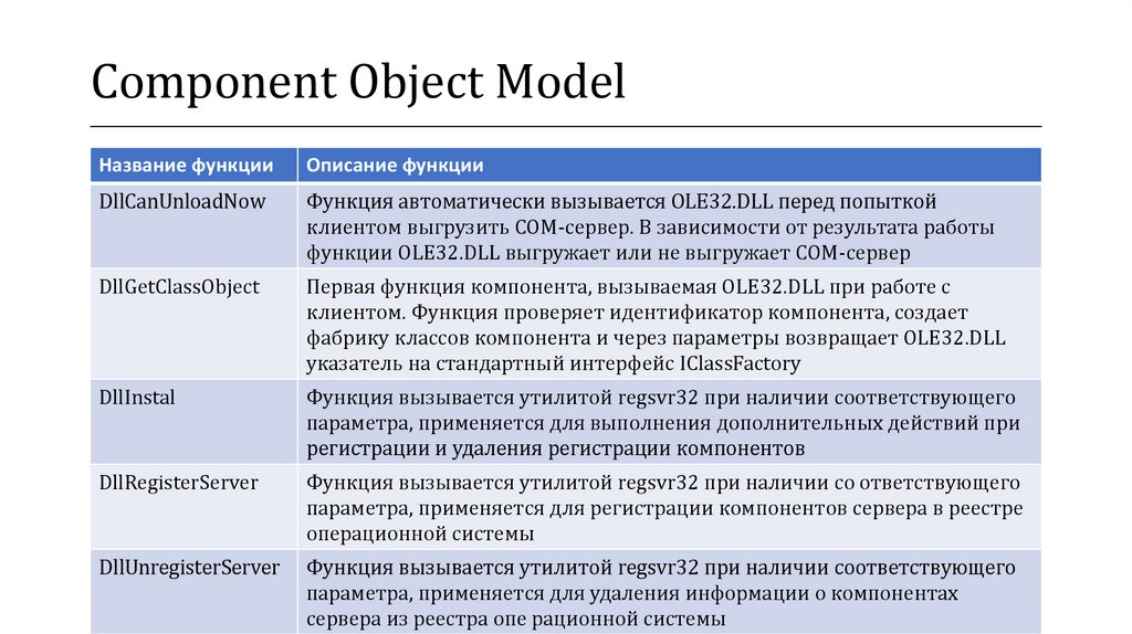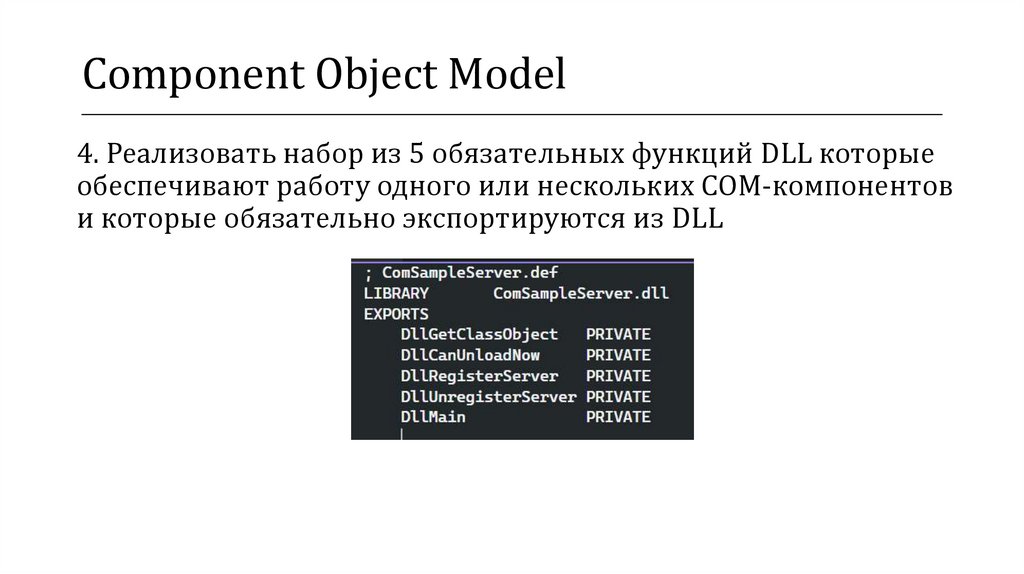 Component Object Model4. Реализовать набор из 5 обязательных функций DLL которые