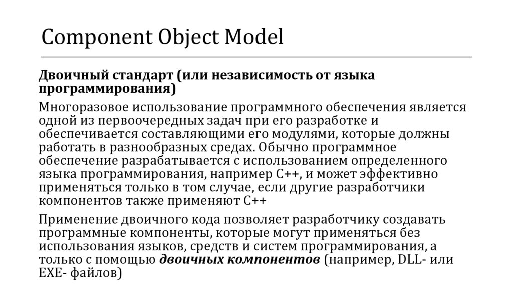 Component Object ModelДвоичный стандарт (или независимость от языка