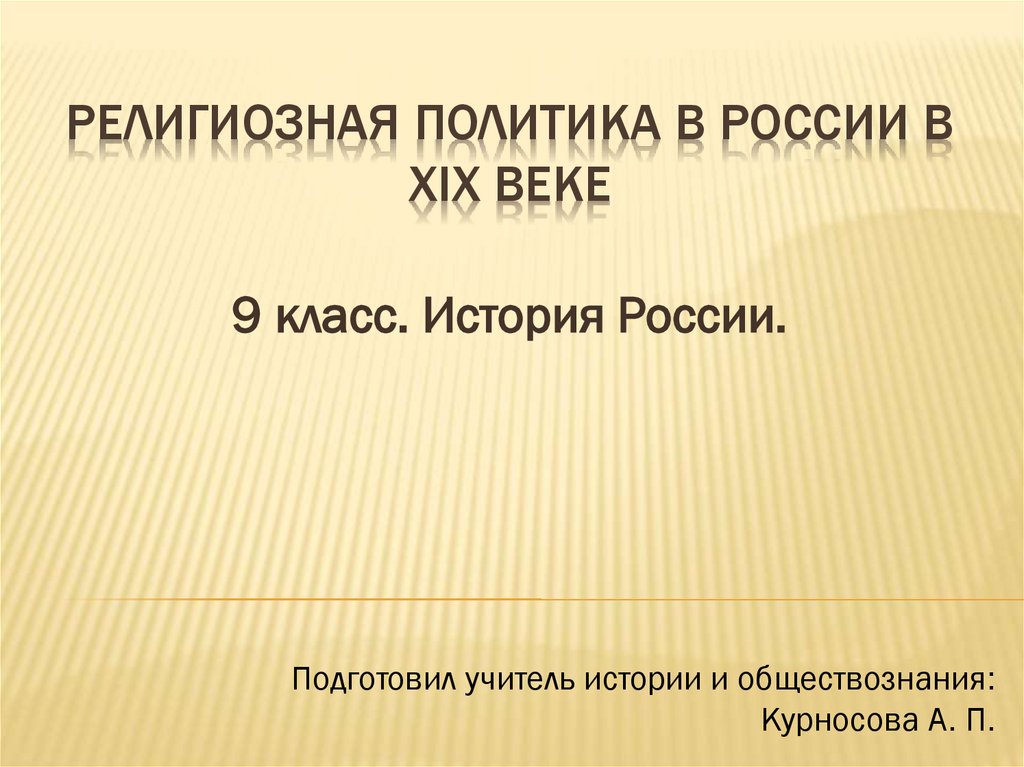 Религиозная политика в России в XIX веке. 9 класс. История России
