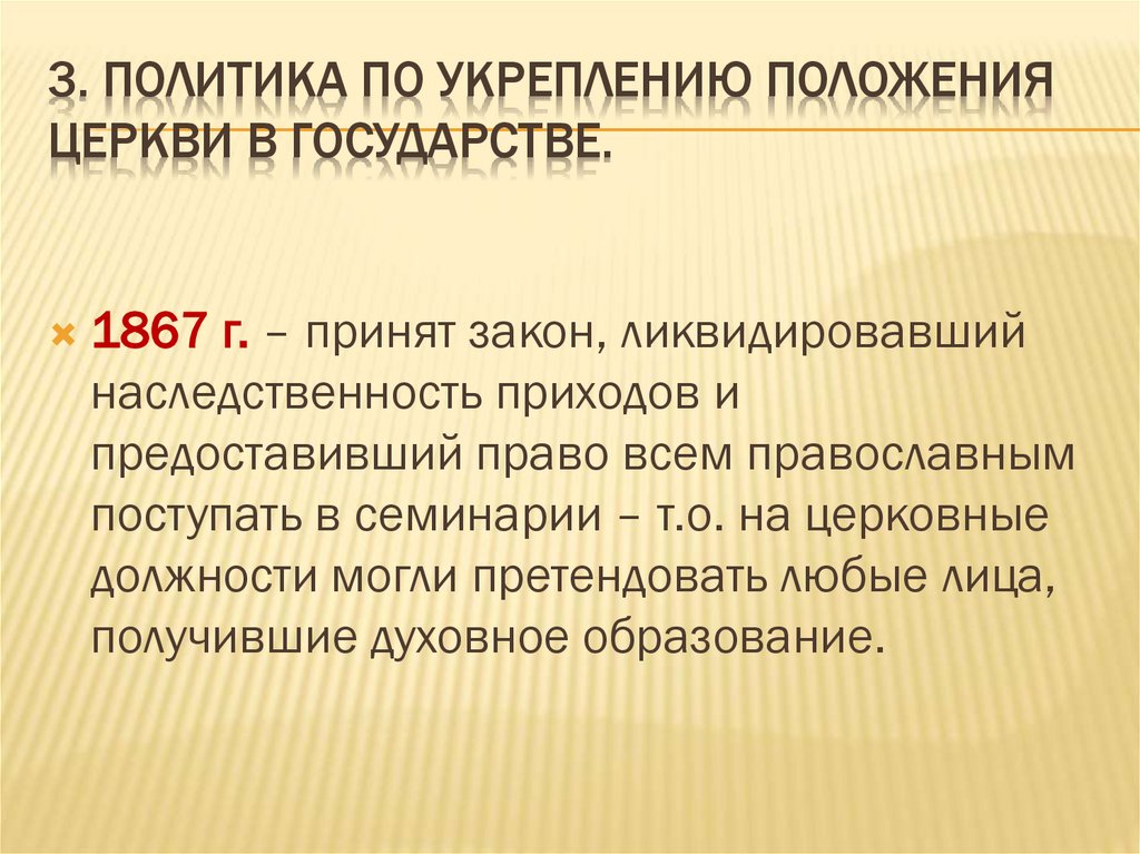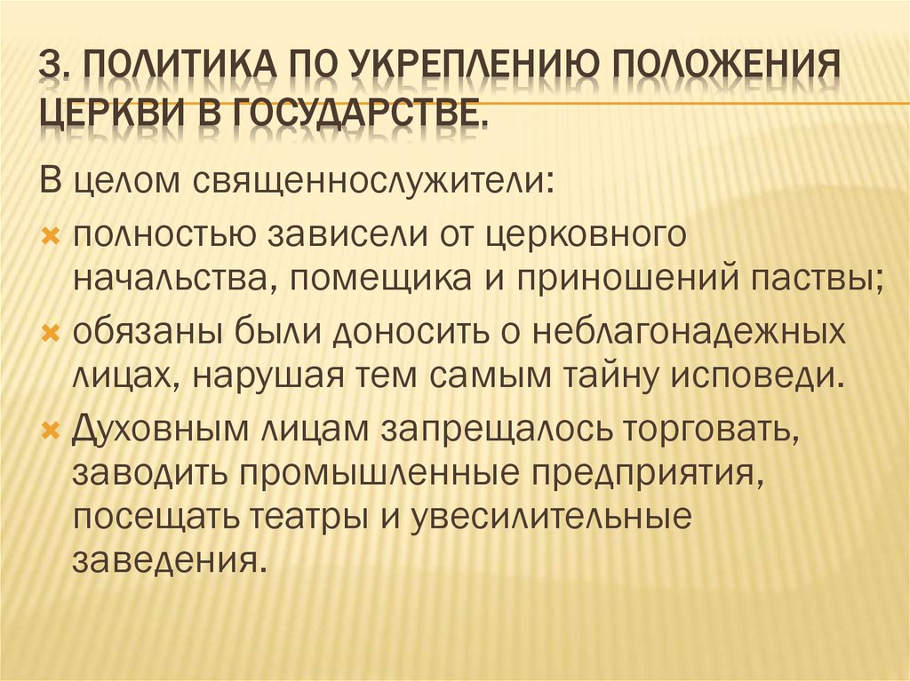 3. ПОЛИТИКА ПО УКРЕПЛЕНИЮ ПОЛОЖЕНИЯЦЕРКВИ В ГОСУДАРСТВЕ.