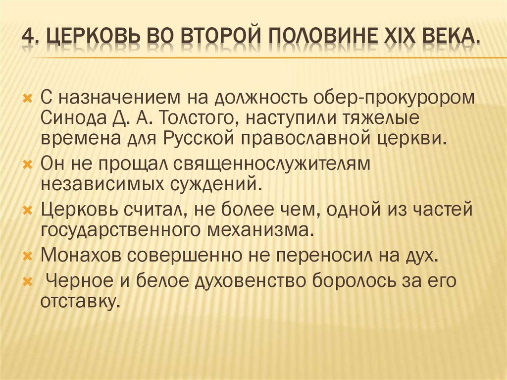 4. ЦЕРКОВЬ ВО ВТОРОЙ ПОЛОВИНЕ XIX ВЕКА.С назначением на должность обер-прокурором