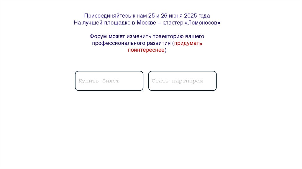 Присоединяйтесь к нам 25 и 26 июня 2025 годаНа лучшей площадке в Москве – кластер «Ломоносов»