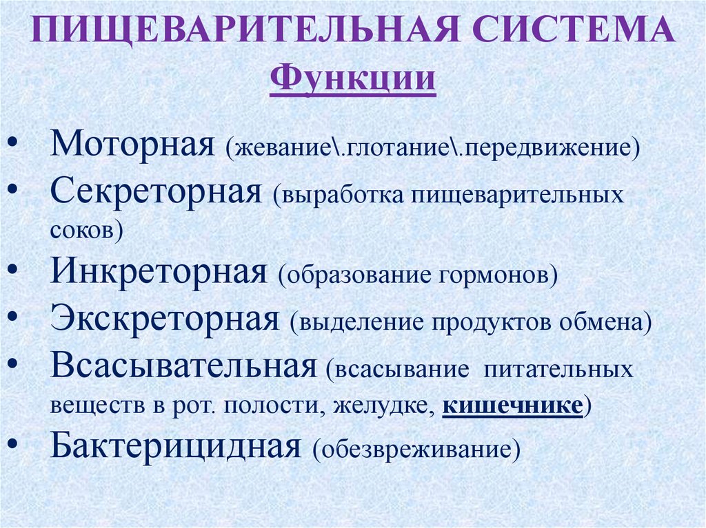 ПИЩЕВАРИТЕЛЬНАЯ СИСТЕМАФункции