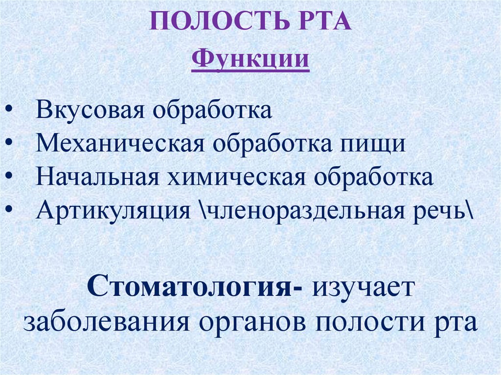 ПИЩЕВАРИТЕЛЬНАЯ СИСТЕМАПОЛОСТЬ РТА