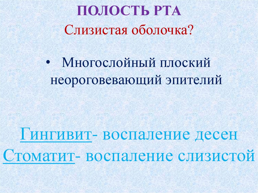 ПОЛОСТЬ РТАСлизистая оболочка?