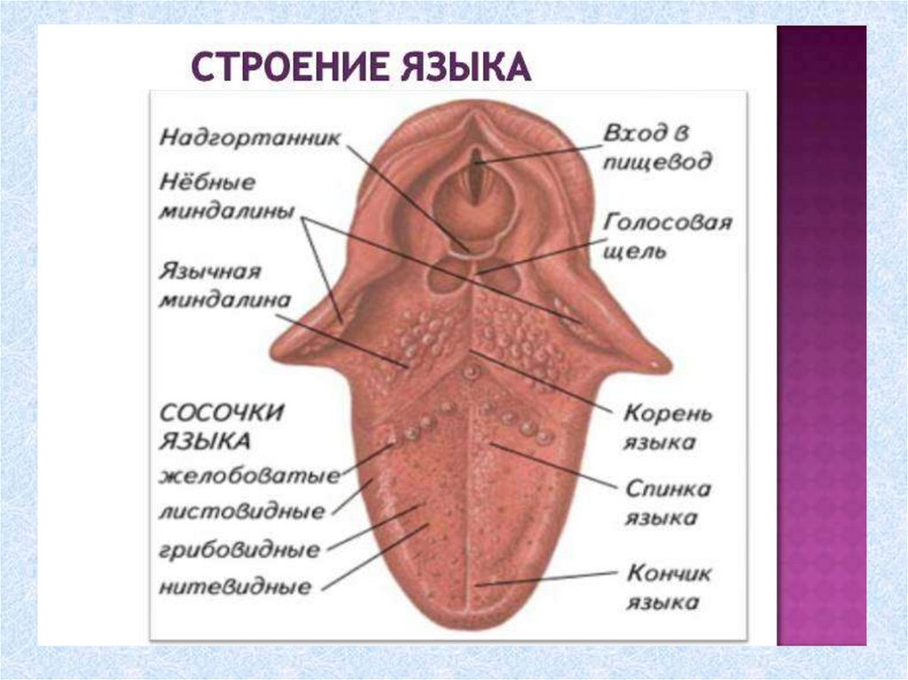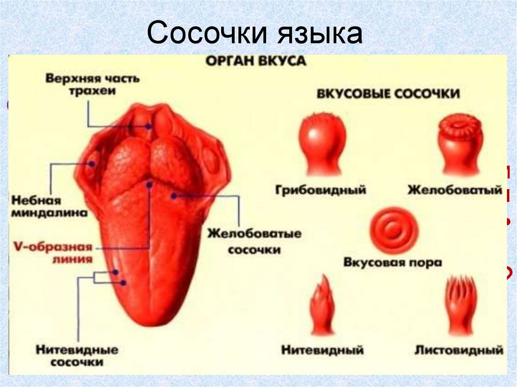 Сосочки языкаНитевидные и конусовидныеобщая чувствительность