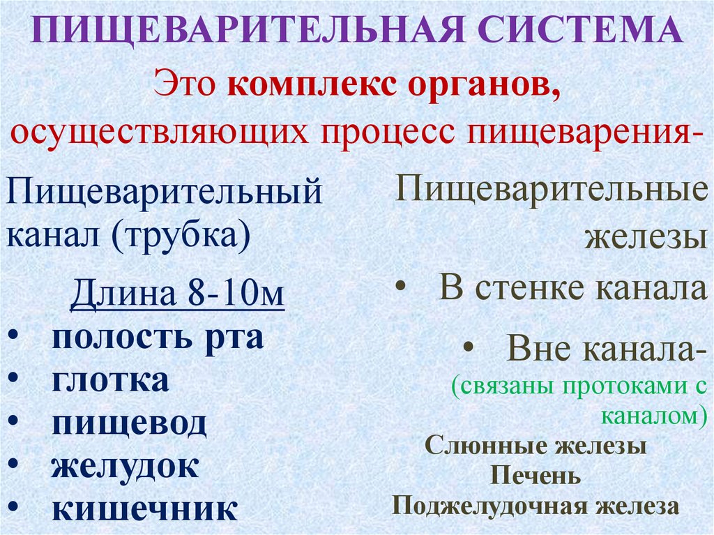 ПИЩЕВАРИТЕЛЬНАЯ СИСТЕМАЭто комплекс органов,