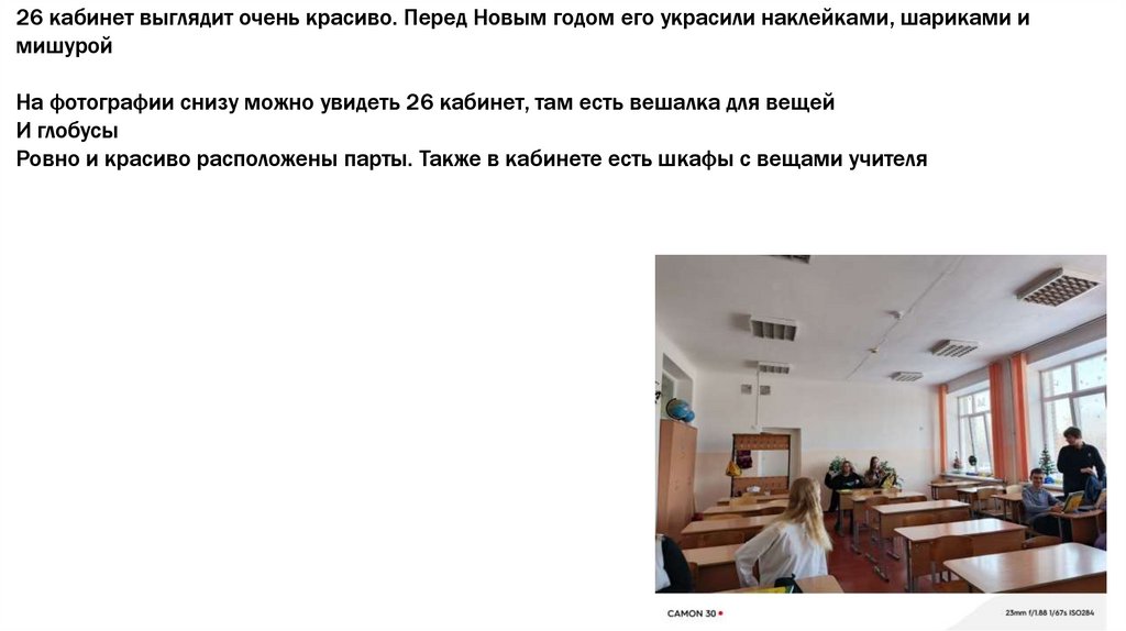 26 кабинет выглядит очень красиво. Перед Новым годом его украсили наклейками, шариками имишурой